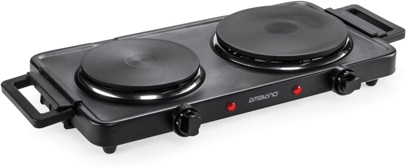 Ambiano Double Hot Plate Electric Hob with 2 Hobs up to 2500 W with Soft Touch Handles with Overheating Protection